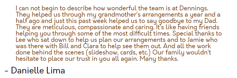 Please feel free to browse our pages to learn more about pre-planning a funeral and about grief support, as well as the traditional funeral and cremation services that we offer. If you have any questions or concerns, please feel free to contact us any time. Drop by the office as needed, or contact us via phone or e-mail. We are always here for you.